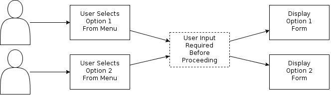 Note that the 2nd step in both Figure 1 and Figure 2 both note that some user input is required before the actual function can commence. As it turns out, the user input required is identical, meaning the exact same form data is captured from the user. This is depicted in Figure 3: